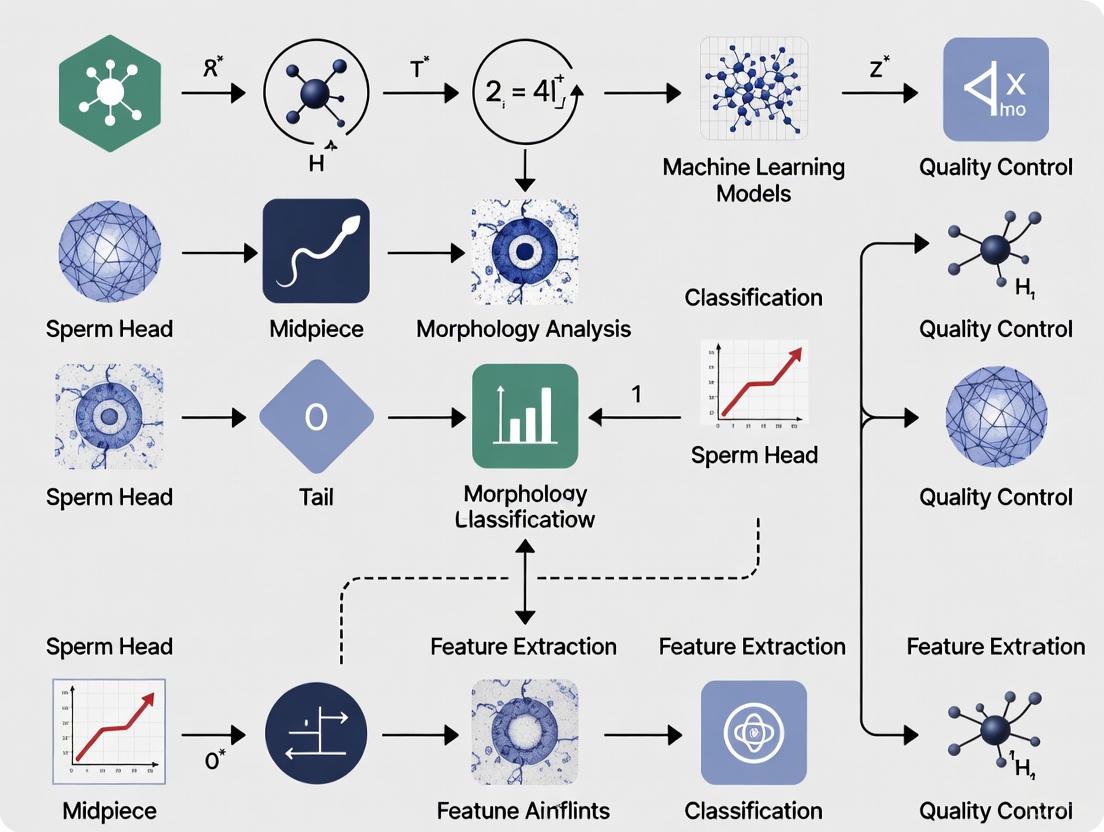 AI Model Training: For deep learning approaches, a dataset (e.g., 1000 images extended to 6035 via data augmentation) is partitioned into training (80%) and testing (20%) sets. The images undergo pre-processing, including normalization and resizing (e.g., to 80x80x1 grayscale). A Convolutional Neural Network (CNN) architecture is then trained and evaluated using platforms like Python 3.8 to classify sperm into morphological categories based on the established ground truth [7].