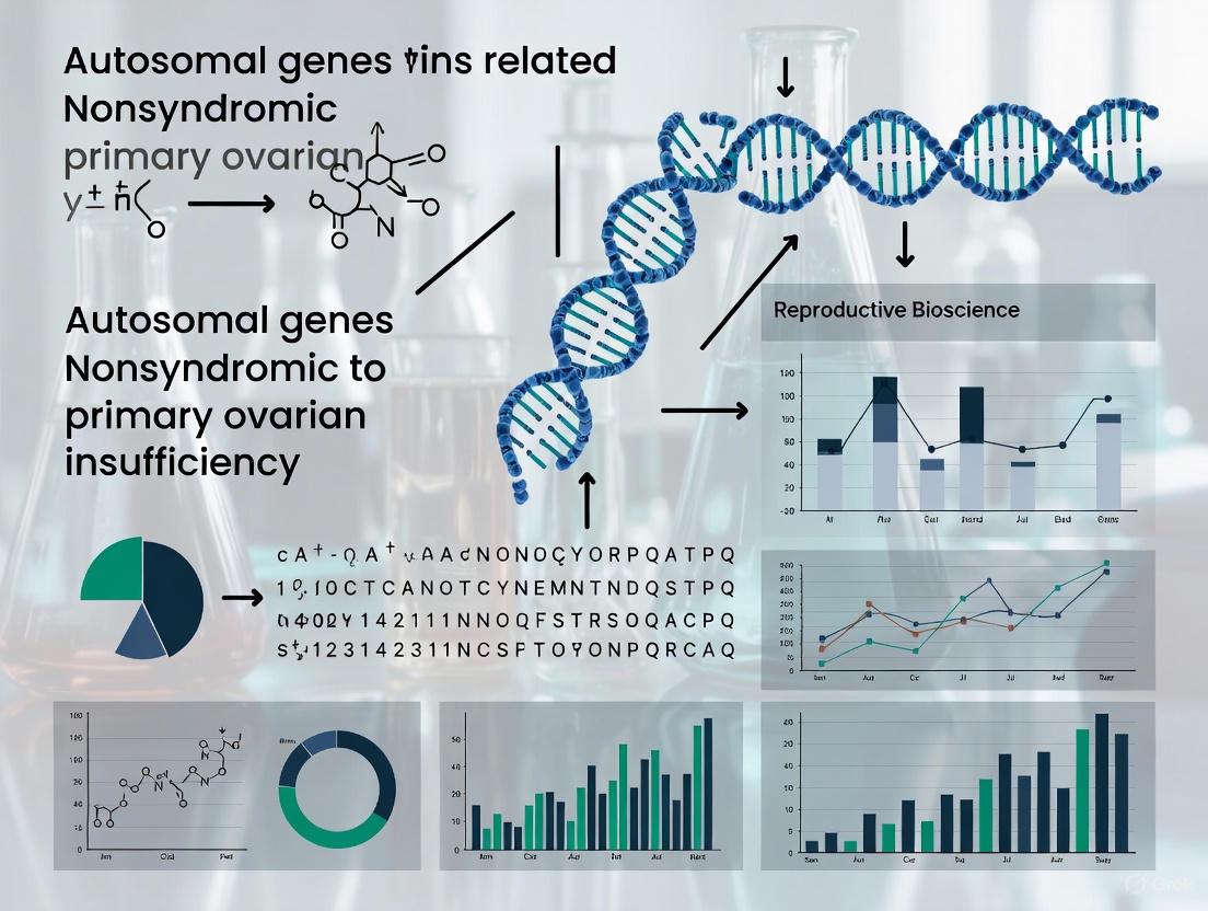 Primary ovarian insufficiency (POI) is a significant cause of female infertility, with genetic factors contributing to approximately 20-25% of cases. While early research emphasized X-chromosome abnormalities, recent advances have illuminated the critical role of autosomal genes in nonsyndromic POI pathogenesis. This review synthesizes current knowledge on autosomal genetic determinants, exploring their functions across folliculogenesis stages, from primordial germ cell development to follicle maturation. We examine methodological approaches for gene discovery, discuss challenges in variant interpretation and clinical translation, and evaluate emerging therapeutic targets. For researchers and drug development professionals, this article provides a comprehensive framework for understanding the complex genetic architecture of nonsyndromic POI and identifies promising directions for diagnostic innovation and targeted interventions.