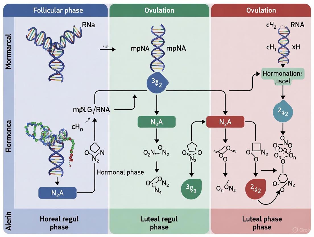 Nuclear Hormone Receptors (NRs) represent a superfamily of ligand-activated transcription factors that directly translate hormonal signals into regulated gene expression programs. These receptors function as master regulators of numerous biological processes, including development, metabolism, and reproduction [14]. In the context of the menstrual cycle, NRs mediate the extensive physiological changes that occur in response to the carefully orchestrated fluctuations of estrogen and progesterone, thereby coordinating cycle phase-specific gene expression [15] [16].