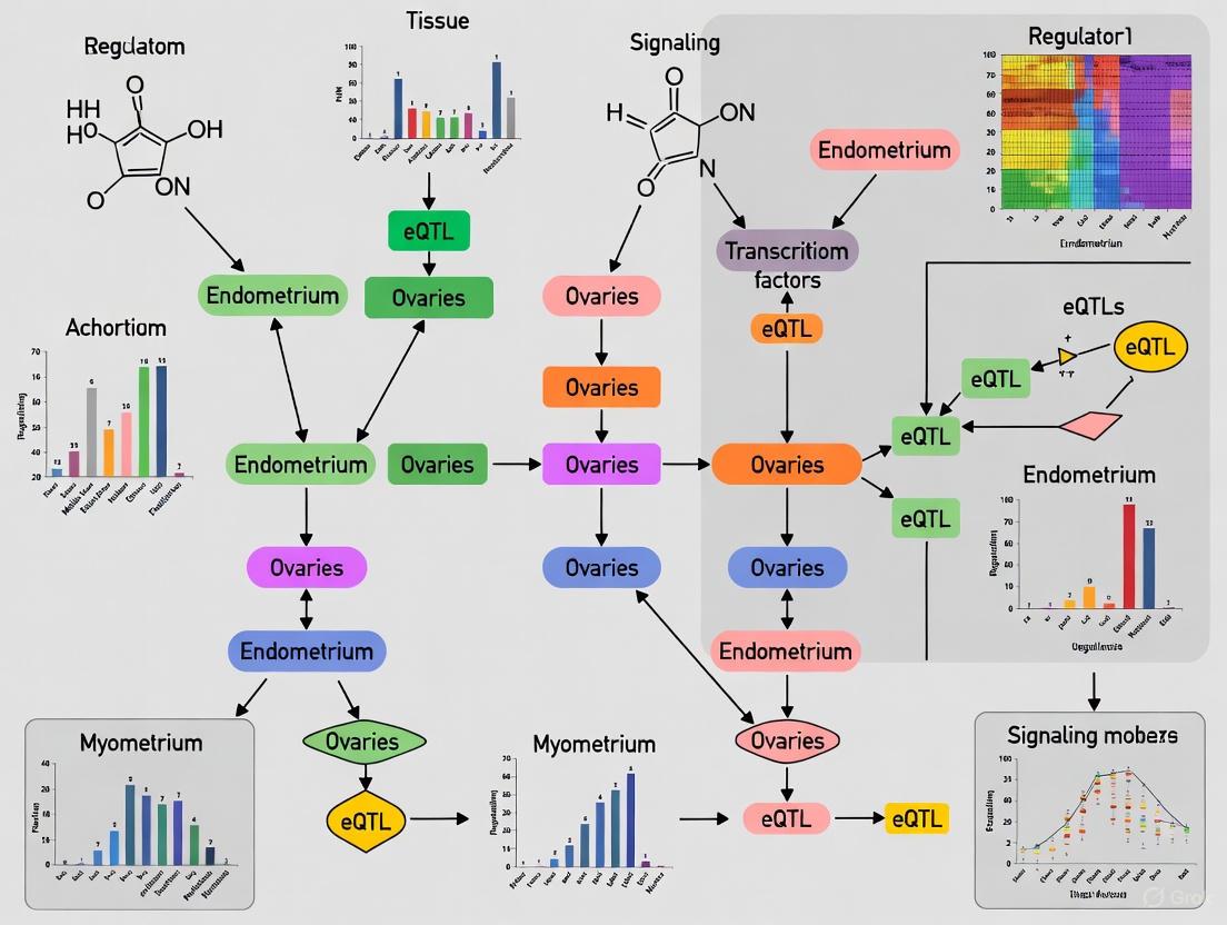 Expression quantitative trait loci (eQTLs) represent genomic variants that influence gene expression levels, potentially contributing to disease pathogenesis when occurring in key regulatory regions. Recent research has demonstrated that endometriosis-associated genetic variants exhibit tissue-specific regulatory effects across physiologically relevant tissues, including uterus, ovary, vagina, sigmoid colon, ileum, and peripheral blood [3].