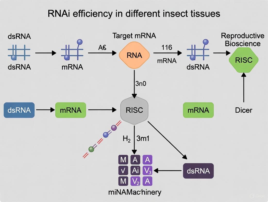 This article provides a comprehensive analysis of the variable efficiency of RNA interference (RNAi) across different insect tissues, a critical factor for both fundamental research and applied biotechnology.