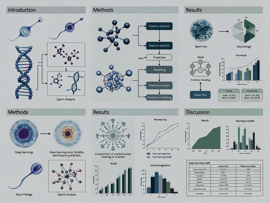 This review synthesizes current advancements in deep learning (DL) applications for sperm fertility prediction, a critical domain in addressing male-factor infertility. We explore the foundational concepts establishing the clinical need for automated, objective analysis and detail the methodological landscape, focusing on Convolutional Neural Networks (CNNs) for sperm morphology classification and motility assessment. The content critically addresses major troubleshooting and optimization challenges, including the scarcity of standardized, high-quality datasets and model generalizability. Furthermore, we examine validation strategies and performance comparisons between DL and traditional machine learning models. Aimed at researchers, scientists, and drug development professionals, this article highlights the potential of DL to standardize semen analysis, enhance diagnostic accuracy, and pave the way for personalized reproductive treatments, while also discussing the path toward robust clinical implementation.
