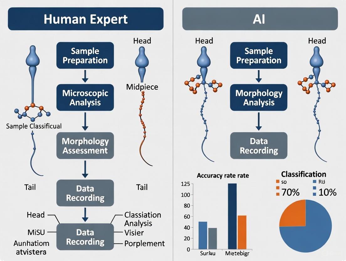 This article provides a systematic comparison between human expert and artificial intelligence (AI) methodologies for sperm morphology classification, a critical component of male infertility diagnosis.