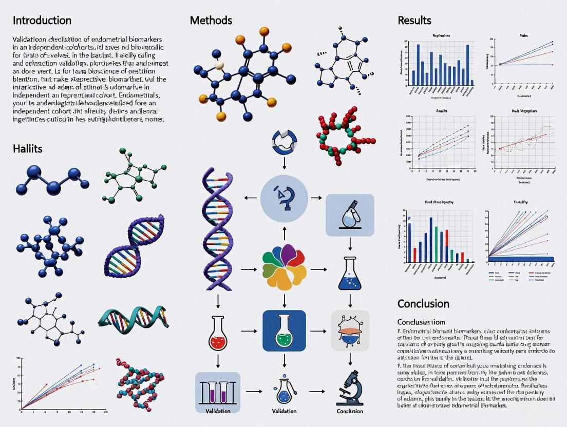 The validation of endometrial biomarkers in independent cohorts remains a critical bottleneck in translating research discoveries into clinical practice. Successful validation requires addressing multiple challenges simultaneously: standardizing pre-analytical procedures, accounting for biological variability, employing robust statistical methods, and utilizing advanced technological platforms. The integration of multi-omics approaches with artificial intelligence presents promising avenues for developing biomarker panels with enhanced diagnostic and prognostic capabilities. Future directions must focus on large, well-phenotyped multicenter cohorts, standardized reporting of validation studies, and the development of clinically feasible assays. Ultimately, rigorously validated biomarkers will enable earlier diagnosis, improved risk stratification, and personalized treatment strategies for endometrial disorders, significantly impacting patient outcomes and advancing women's health.