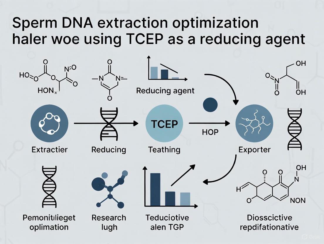 This technical support resource addresses common challenges and provides detailed methodologies for researchers optimizing sperm DNA extraction protocols using Tris(2-carboxyethyl)phosphine (TCEP) as a reducing agent.