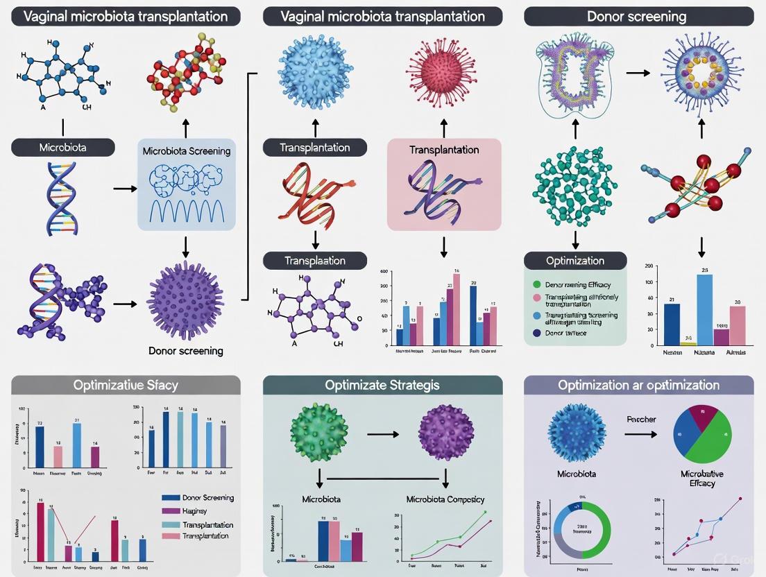 Vaginal Microbiota Transplantation (VMT) is an emerging therapeutic strategy for conditions like recurrent bacterial vaginosis, with recent clinical trials demonstrating successful donor strain engraftment. However, its efficacy and safety are critically dependent on a robust donor screening protocol. This article synthesizes the latest research and clinical evidence to provide a comprehensive framework for VMT donor optimization. Tailored for researchers, scientists, and drug development professionals, it covers foundational principles of the vaginal microbiome, methodological approaches for donor selection and characterization, strategies to overcome clinical and technical challenges, and comparative analyses with other microbiota transplantation therapies. The goal is to establish standardized, evidence-based criteria that minimize risk and maximize therapeutic success in future VMT applications.