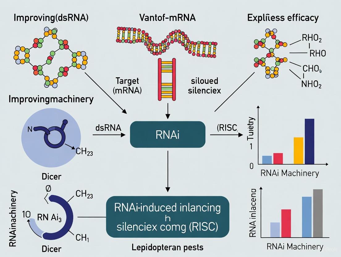 RNA interference (RNAi) presents a highly specific and environmentally sustainable alternative to chemical insecticides for managing lepidopteran pests, which are responsible for significant global crop losses. However, the variable and often low RNAi efficacy in Lepidoptera poses a major challenge for its practical application. This article synthesizes recent scientific advances to provide a comprehensive roadmap for improving RNAi outcomes. We explore the foundational biological barriers—including gut nucleases, inefficient cellular uptake, and core RNAi machinery deficits—that limit gene silencing. The review further details innovative methodological approaches such as nanoparticle-mediated dsRNA delivery, rational design of RNAi triggers, and Spray-Induced Gene Silencing (SIGS). We also present troubleshooting protocols for optimizing dsRNA stability and cellular entry, alongside validation frameworks for assessing efficacy across species and real-world conditions. This resource is tailored for researchers, scientists, and product development professionals seeking to translate RNAi technology into effective lepidopteran pest management solutions.