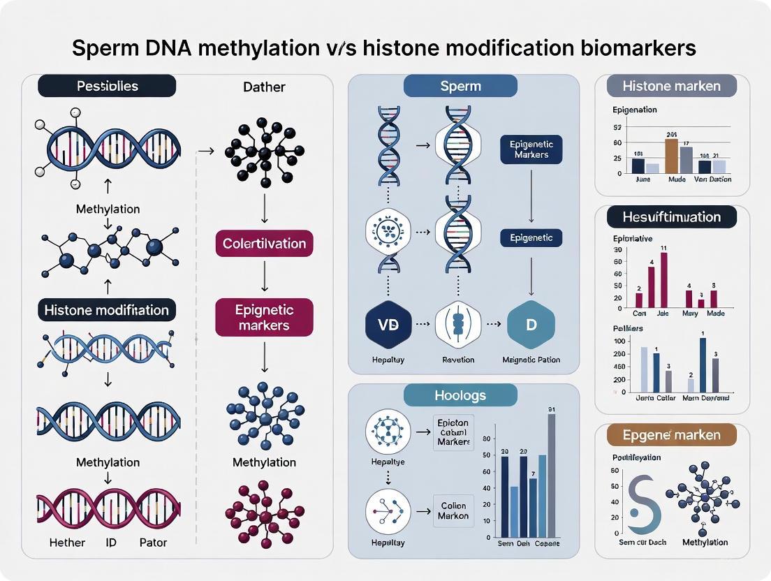 This article provides a comprehensive comparative analysis of DNA methylation and histone modification biomarkers in sperm for researchers and drug development professionals.