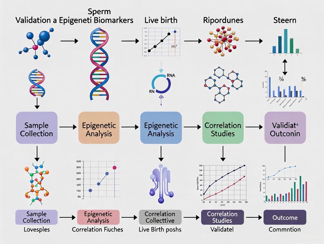 The validation of molecular biomarkers in independent cohorts is a critical step in translating research findings into clinically useful tools for assisted reproductive technology (ART). This guide objectively compares the emerging evidence for various sperm epigenetic biomarkers, focusing on their validation for predicting ART outcomes, particularly live birth. Despite promising findings, the field faces a significant challenge: a lack of large-scale, multi-center studies validating these biomarkers for the most clinically relevant endpoint—live birth.