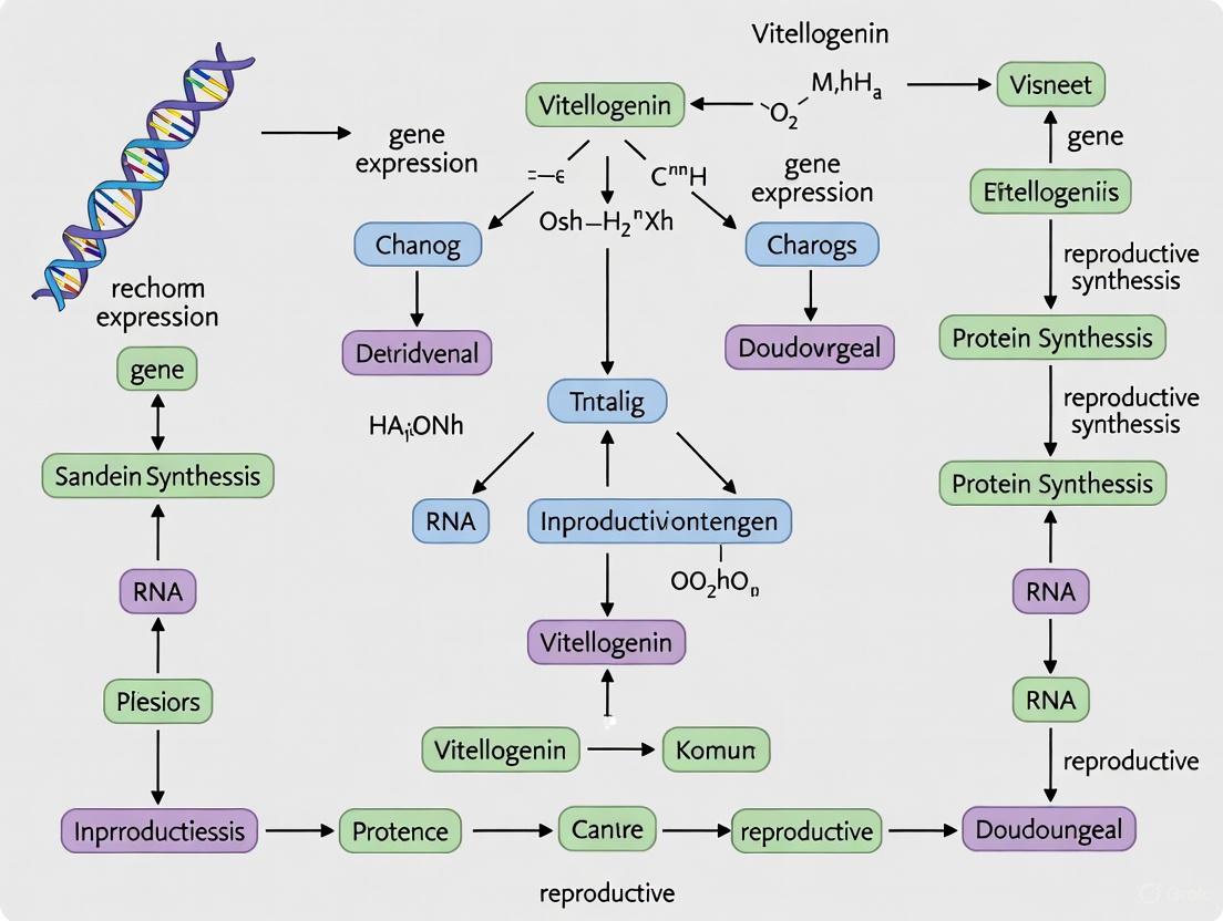 Diagram 2: Vitellogenin regulatory and trafficking pathway. The diagram illustrates the sequence from external cues through gene expression, protein synthesis, transport, and ultimate yolk deposition, highlighting key regulatory points.